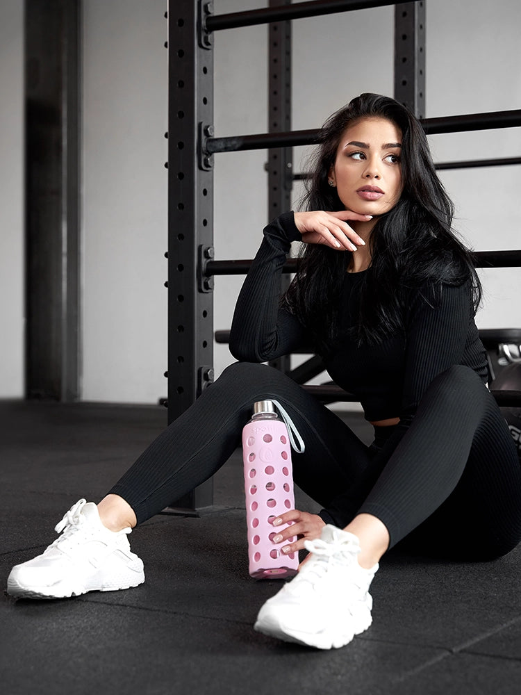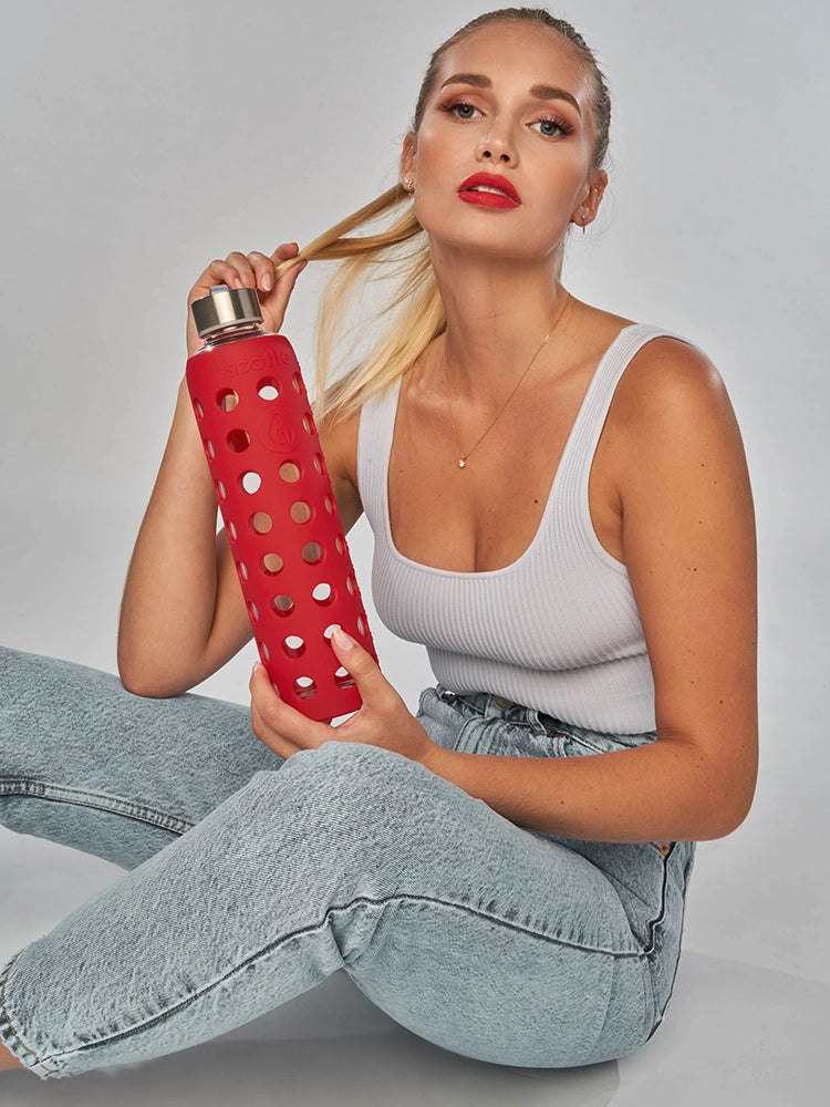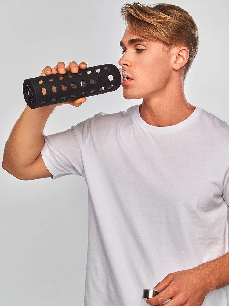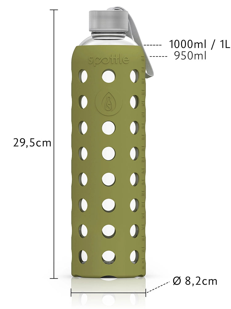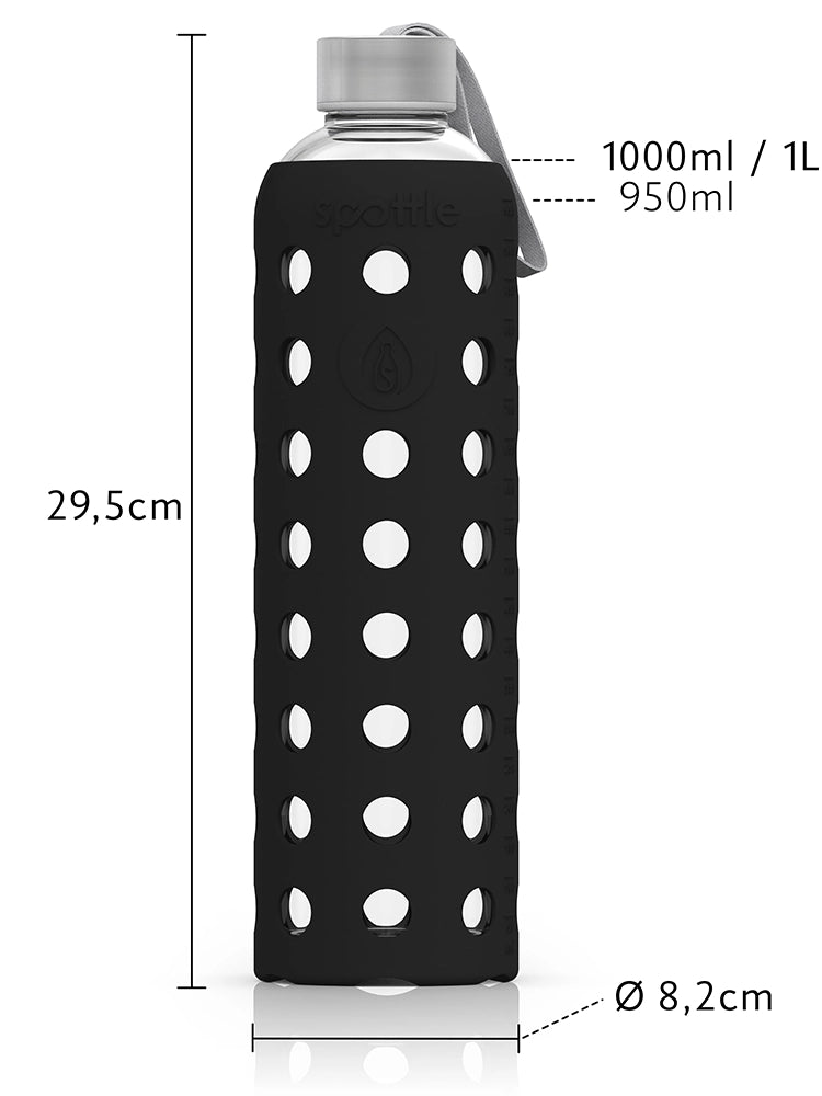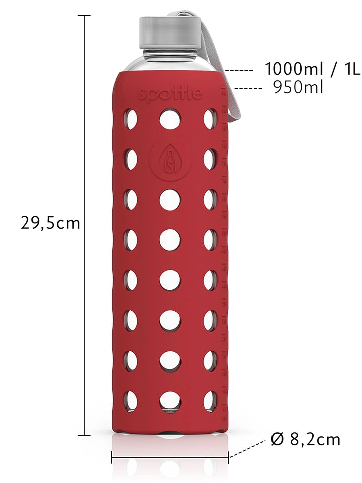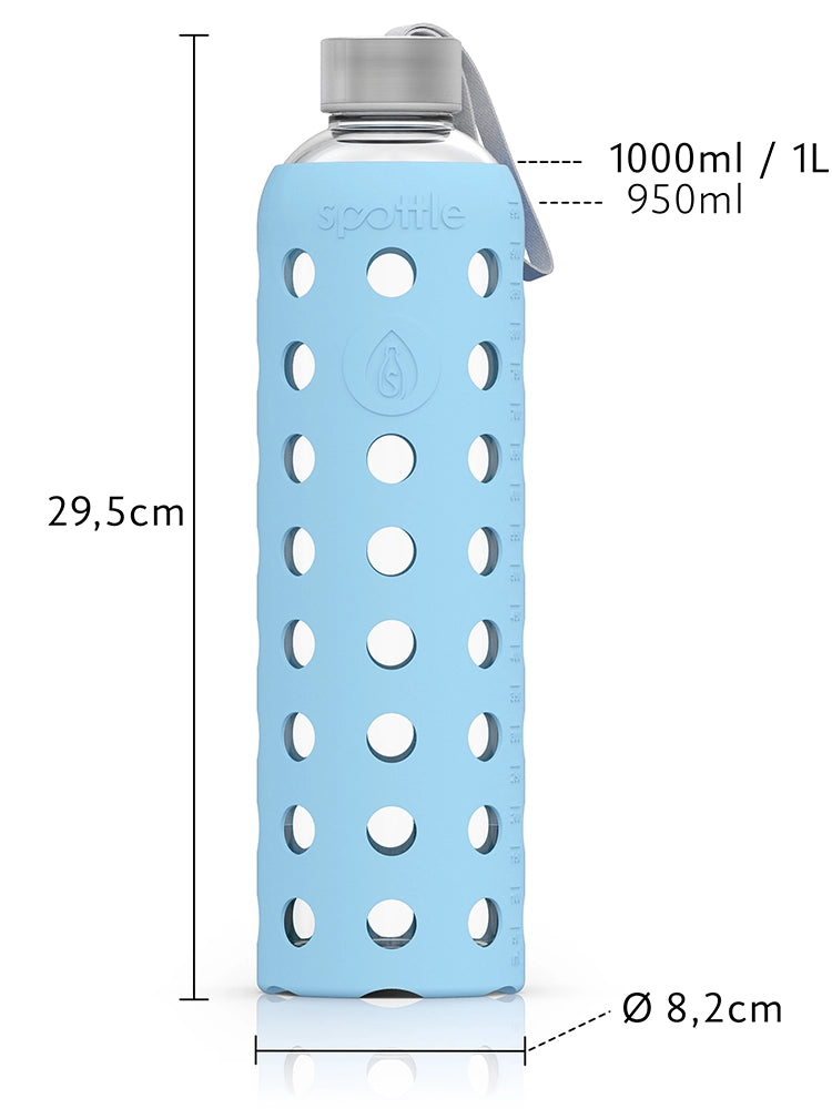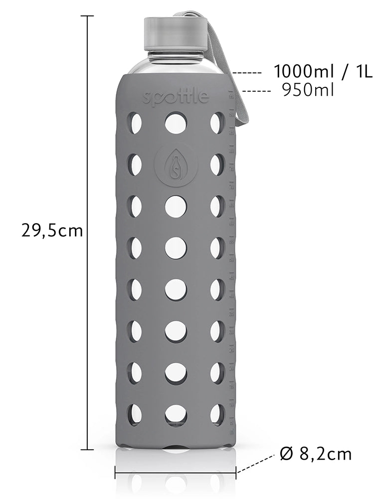Trinkflasche Glas mit Silikonhülle – 1 Liter