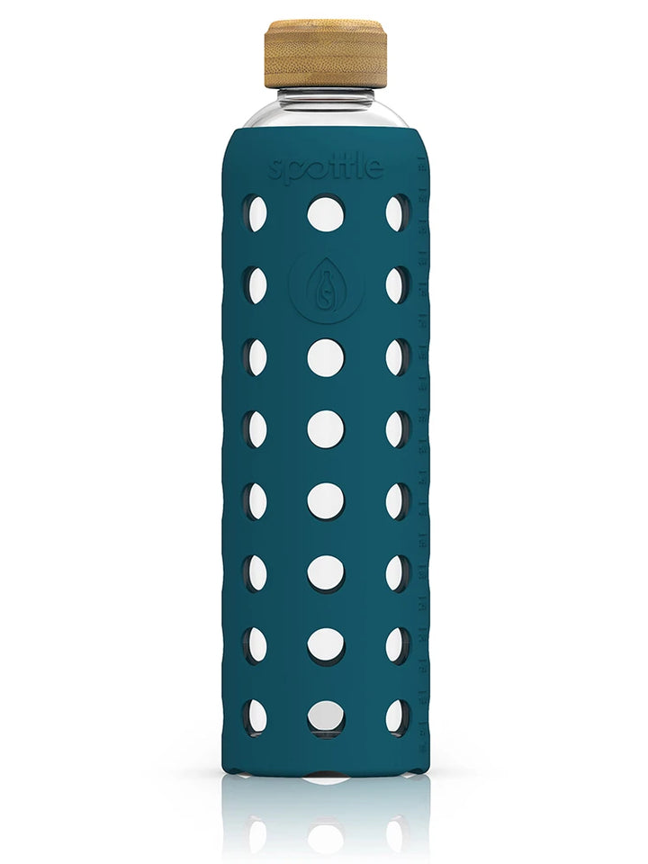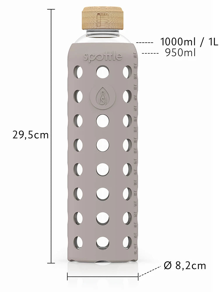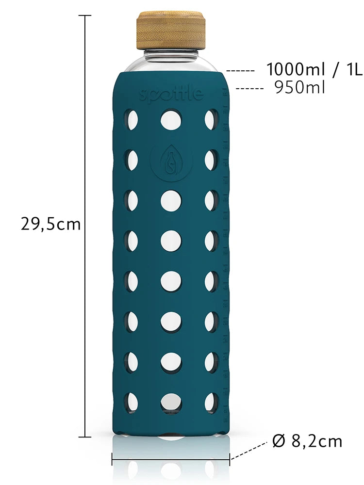 Trinkflasche Glas mit Silikonhülle & Bambusdeckel – 1 Liter