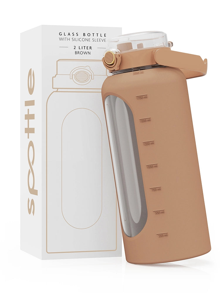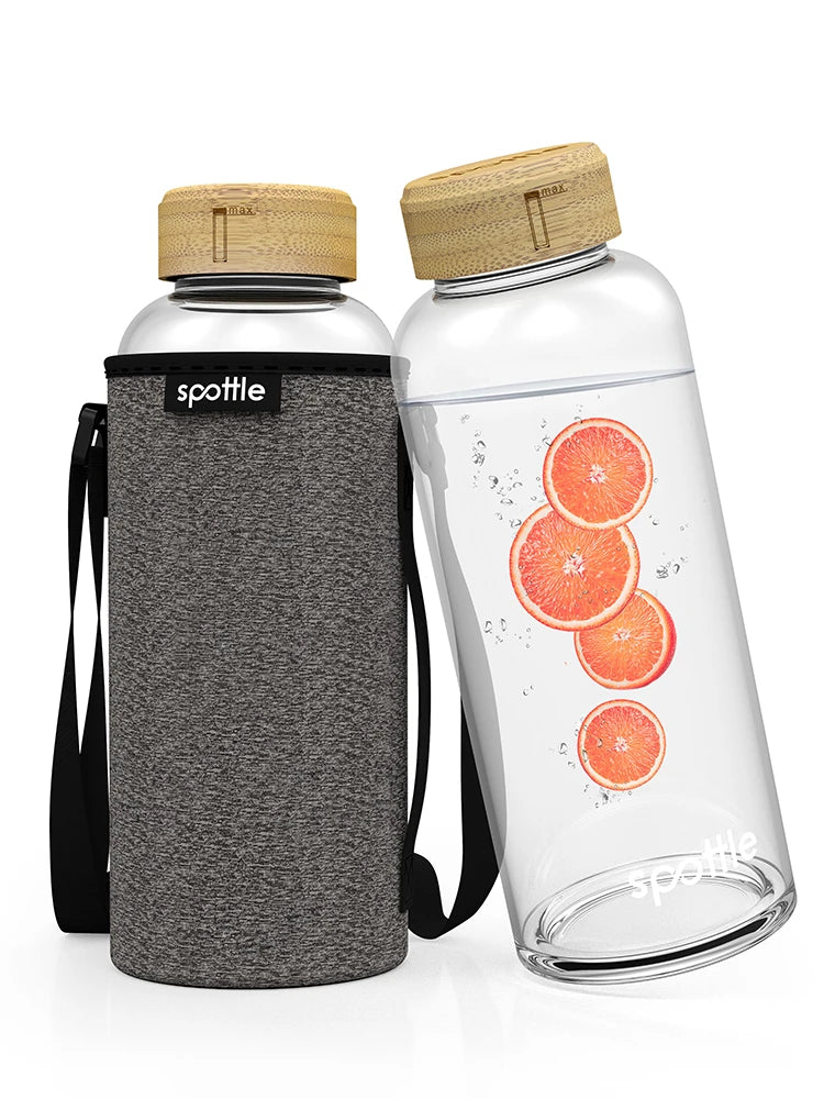 spottle stands as the top choice for both sustainability and health. Our glass bottles excel in environmental friendliness and durability. Featuring high-quality caps crafted from stainless steel and bamboo, they ensure a secure seal and effortless cleaning. Whether it's a refreshing iced tea in summer or a comforting herbal brew in winter, spottle bottles guarantee the perfect choice every time. Our products boast robust construction, undergoing strict quality checks to ensure longevity. With sizes to suit every need, from the compact 550ml version for short trips to the 1L bottle for office days, and the 750ml option for sports enthusiasts. For longer adventures requiring ample hydration, our generous 1,5L bottle and 2 liter water bottles is the ideal companion.