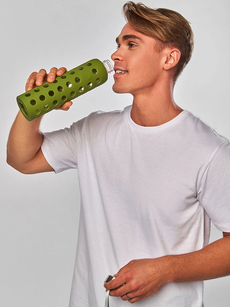Glass water bottle with silicone sleeve – 750 ml (24oz)