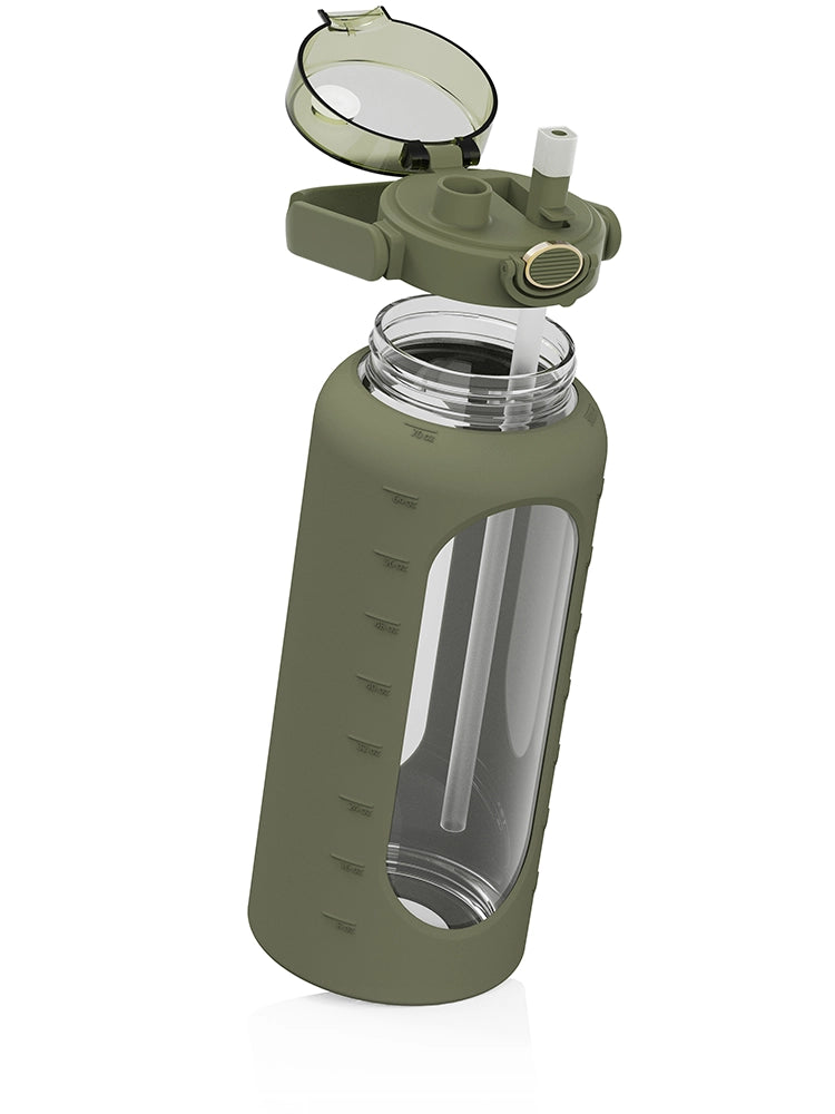 Glass water bottle with silicone sleeve 2 L (64oz)