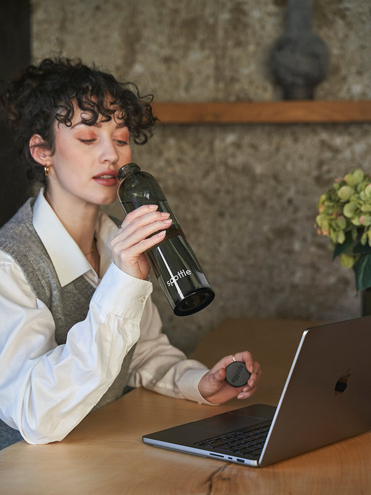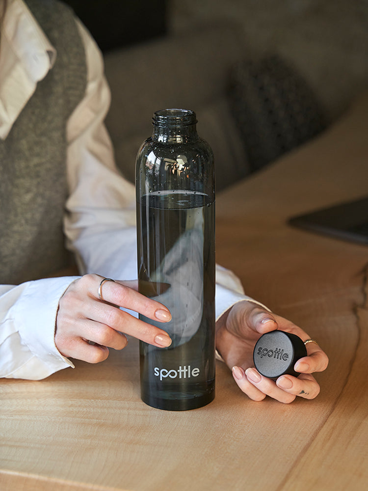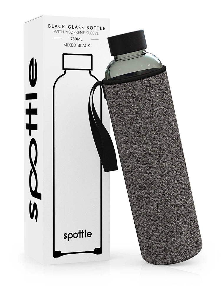 Black glass water bottle with neoprene sleeve – 750 ml (24oz)