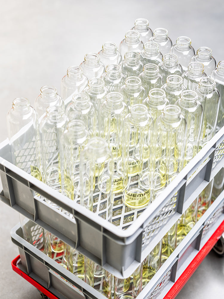 Our glass bottles are made from durable borosilicate glass with a reinforced base – stronger than standard glass and completely neutral in taste and smell.