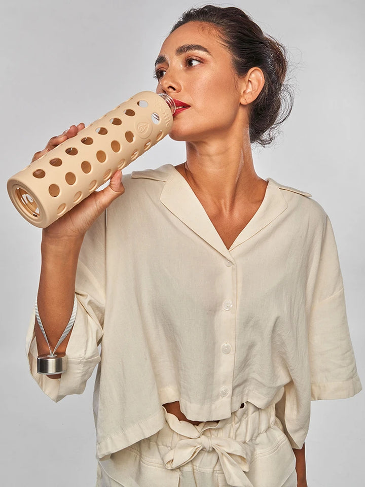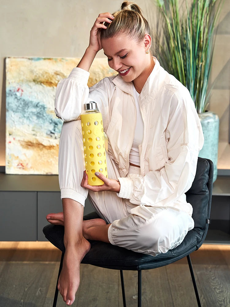 Ich bin sehr zufrieden mit dieser Glastrinkflasche! Dank der Silikonhülle liegt sie angenehm und sicher in der Hand, sodass sie sich auch unterwegs sehr gut greifen lässt. Das Handling ist insgesamt hervorragend. Besonders überzeugt mich der stabile Griff am Deckel, der die Flasche sehr praktisch im Alltag macht. Insgesamt eine wirklich tolle Trinkflasche. Klare Empfehlung!